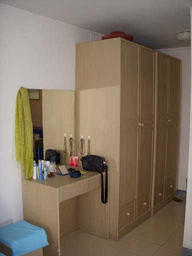 1. It's definitely neat and tidy! You have a very large bed. Can't wait to see how you Janicize the place!Tell us more about where you are … I had the impression that it was urban-ish, but then there are cows on the way to campus, so I'm confused.