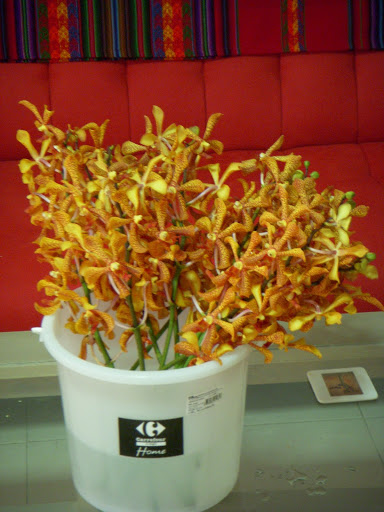 While Britte-Catherine was still sniffing, I realized we were close to the flower market, and since I cleaned my apartment yesterday, all my tabletops were looking bare and neglected without their towers of books and lacy coating of dust. I also have a great moldible/flexible plastic vase that has been sad and empty for quite some time. Putting all these things together in my mind, (while trying to discreetly empty my nose of lotion – unsuccessfully, in case you wanted to know), I thought it would be a great idea to pick up some fresh cut flowers on the way home.