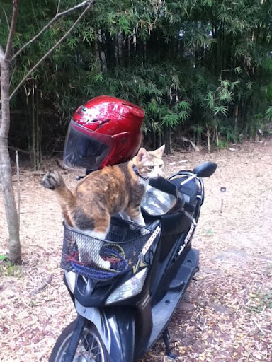 | Pay no attention to the cat in the basket. Check out the gorgeous bamboo grove behind her. |